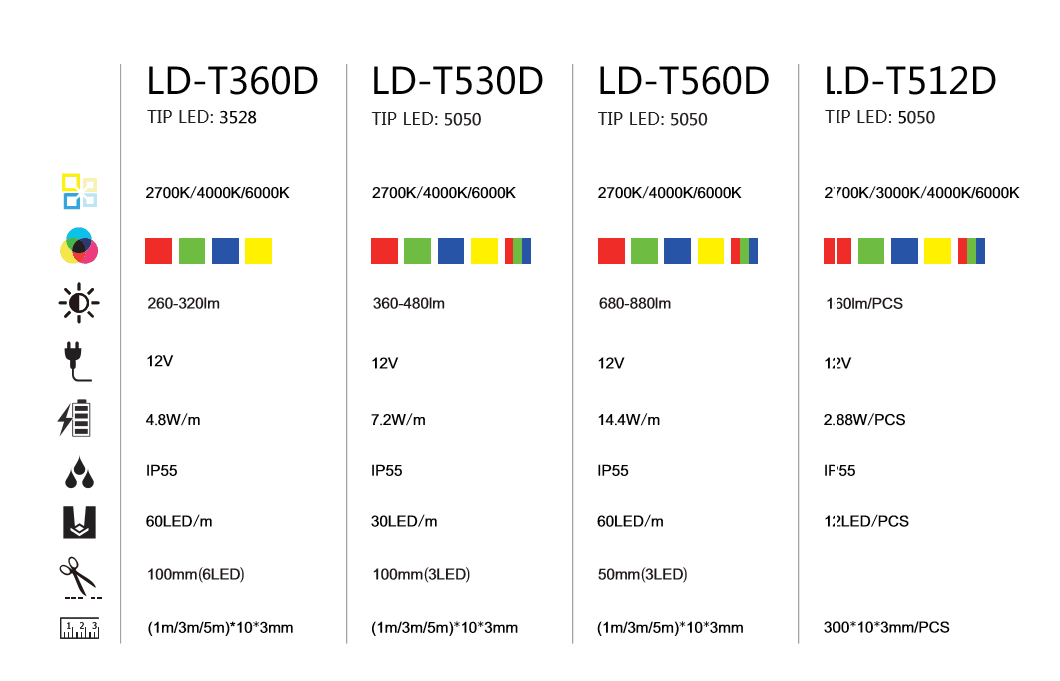 1. 1 PCS 5 Meter ,3 Meter ,1 Meter LED strips (30LEDS/meter, SMD5050 RGB 12V,10mm width)